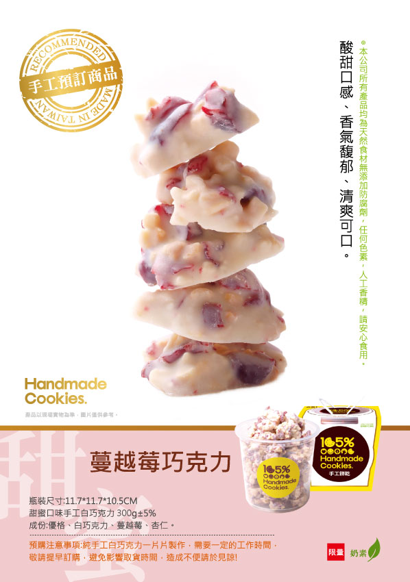 *特選優沛雷蔓越莓,點綴杏仁,結合優葛白巧克力